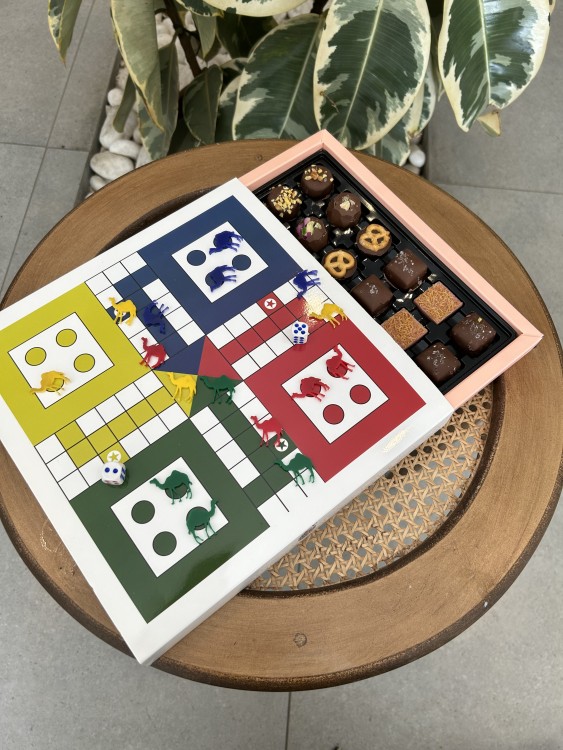 مكعبات شوكلاتة بحشوات متنوعة فستق, كراميل بندق وغيرها من الحشوات