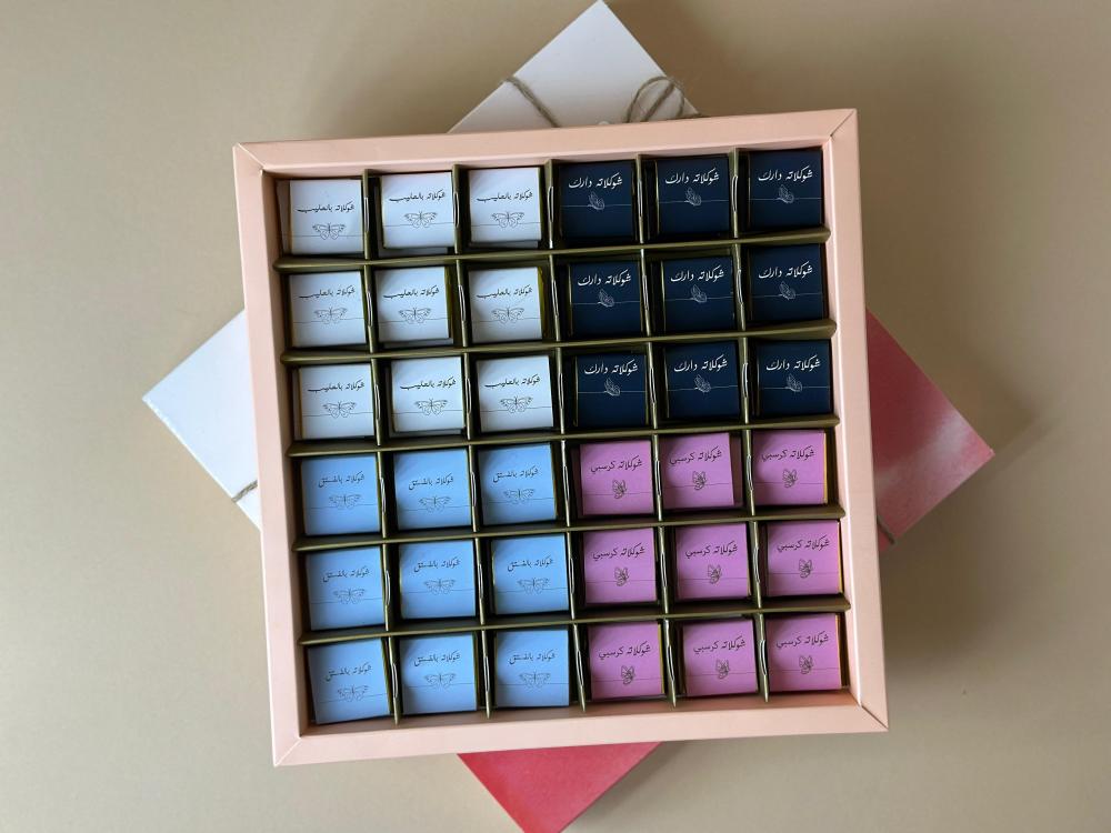 الحجم الصغير 36 حبة والحجم الكبير 72 حبةيوجد طباعة على بطاقات التهنئةشوكلاتة دارك كريسبي شوكلاتة - فستقيوجد طباعة على بطاقات التهنئة
